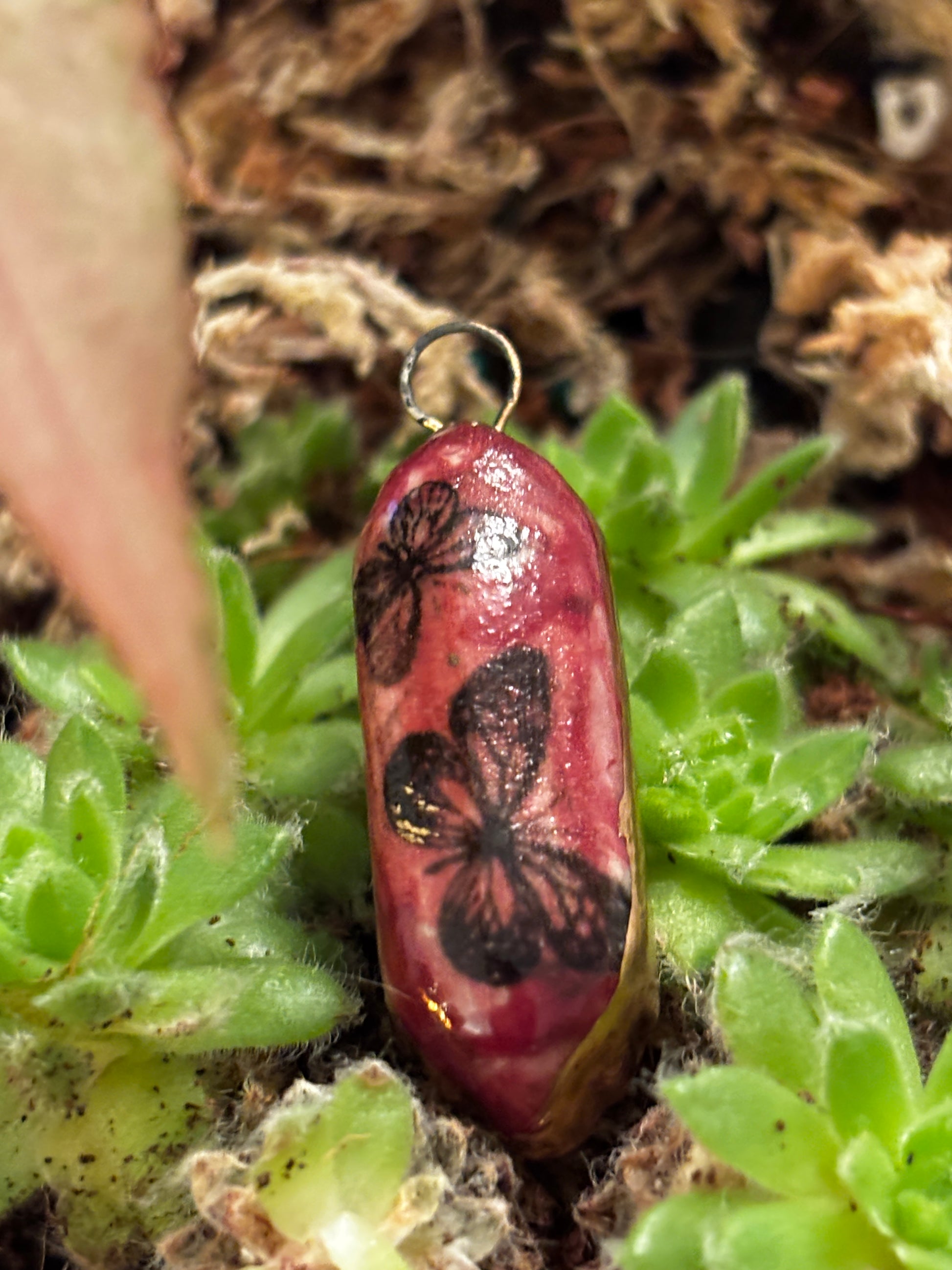 Ervin Street’s butterfly charms are made from porcelain, lovingly hand-painted, and finished with a sparkling gold shine. Each charm is unique and sold solo—no two are exactly alike! They arrive ready to wear with a jump ring already attached. Treat this tiny beauty like fine china—delicate, dazzling, and with a golden glow that needs gentle care to keep sparkling. (Approx 1.25" x 0.5") Crafted with heart in a cozy Blue Ridge mountain studio.